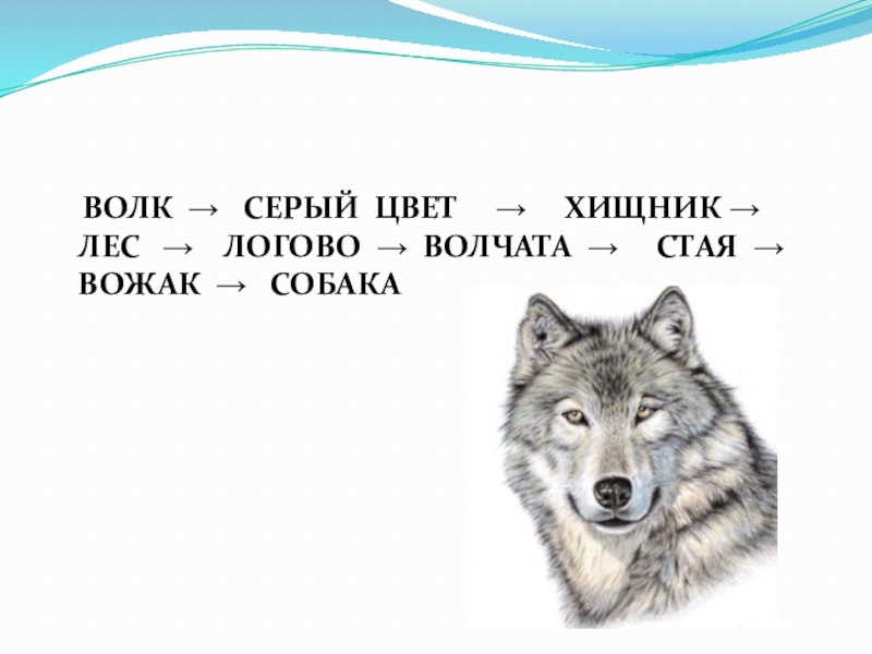 Слайд 26 ВОЛК → СЕРЫЙ ЦВЕТ →