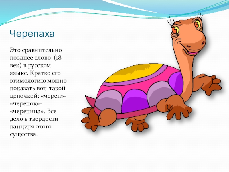этимологию можно показать вот такой цепочкой: «череп»- «черепок»- «черепица». Все дело в твердости панциря этого существа.