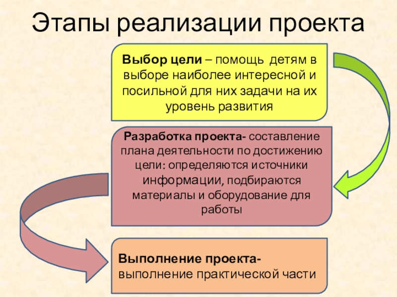 Разработка проекта- составление плана деятельности по достижению цели: определяются источники информации, подбираются материалы и оборудование для работы