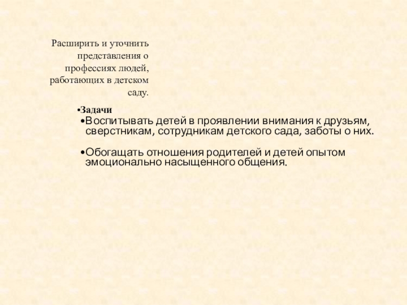 Испытывать гордость и уважение к труду сотрудников детского сада.