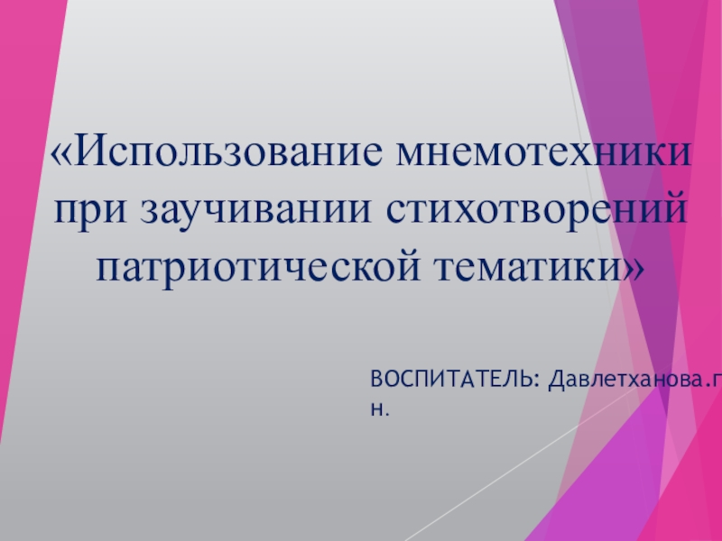 «Использование мнемотехники при заучивании стихотворений патриотической тематики»ВОСПИТАТЕЛЬ: Давлетханова.г.н.