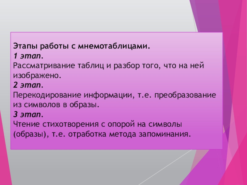 Этапы работы с мнемотаблицами.
