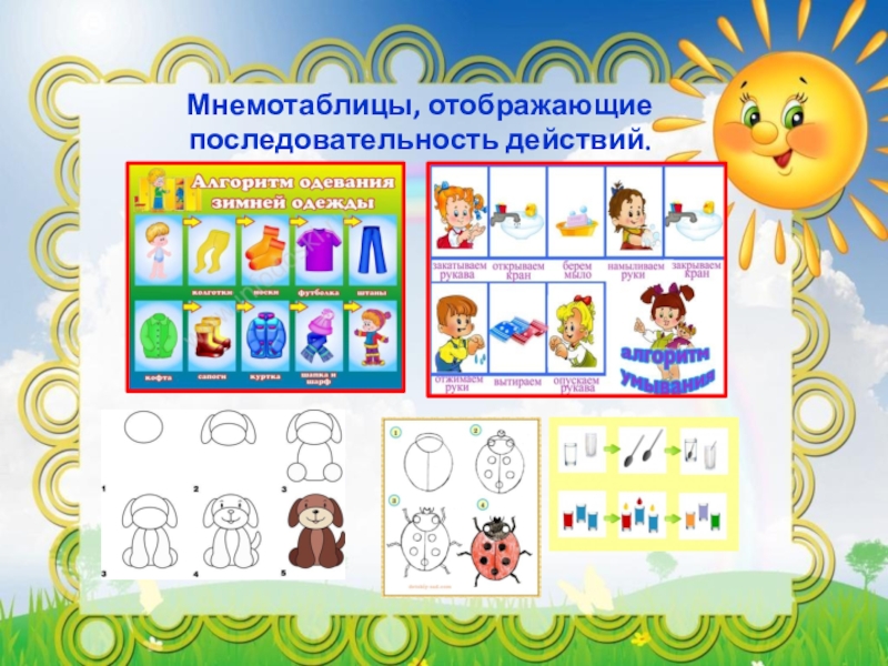 приёмов наглядного моделирования: пиктограммы, заместители, мнемотаблицы.