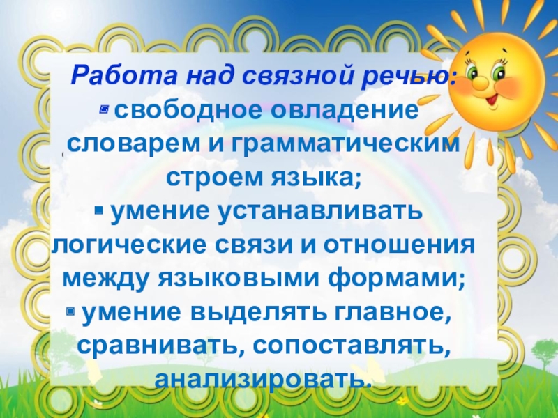 1.Развивать связную речь: монологическую и диалогическую речь.