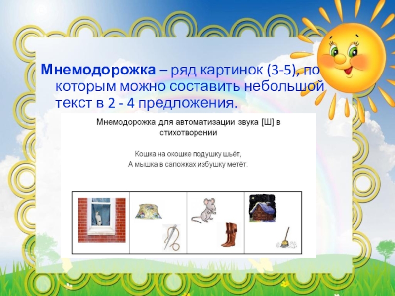 Мнемодорожка – ряд картинок (3-5), по которым можно