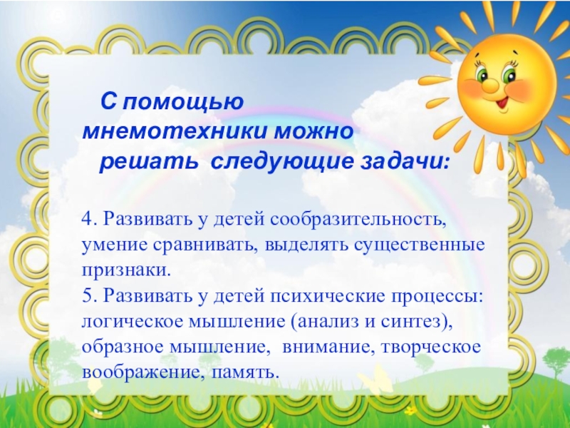5. Развивать у детей психические процессы: логическое мышление (анализ и синтез), образное мышление, внимание, творческое воображение, память.
