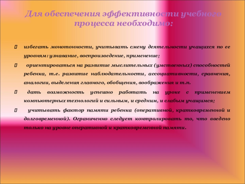 Слайд 38Для обеспечения эффективности учебного процесса необходимо: