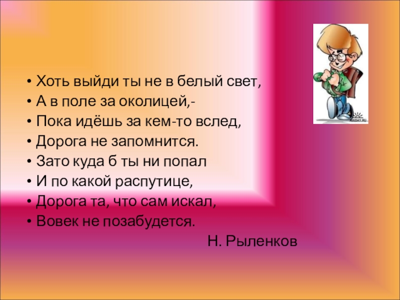 предпочтительнее выносить на слайд предложения, определения, слова, термины, которые учащиеся будут записывать в тетради, прочитывать их вслух во время демонстрации презентации;