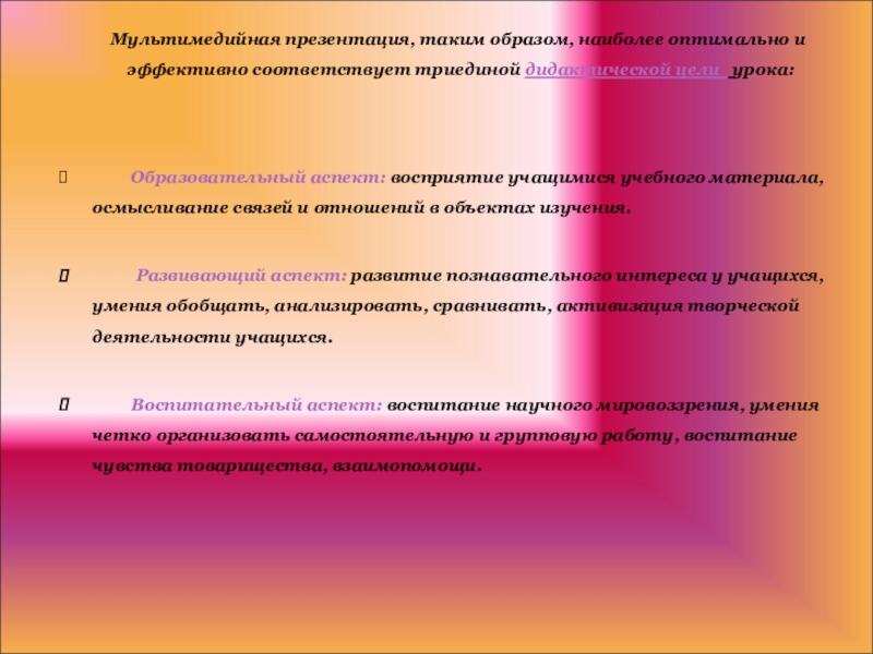 Слайд 7 Мультимедийная презентация, таким образом, наиболее оптимально и