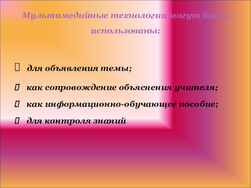 Слайд 8Мультимедийные технологии могут быть использованы: