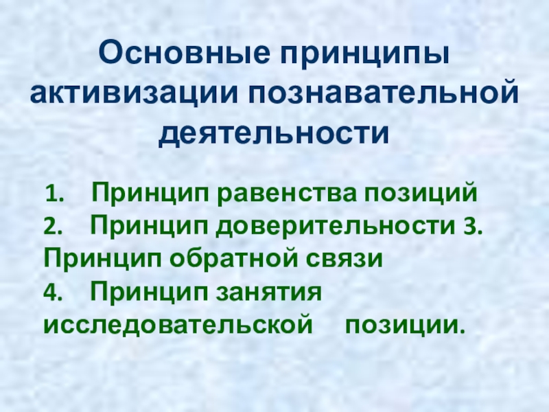 позиций 2. Принцип доверительности 3. Принцип обратной связи