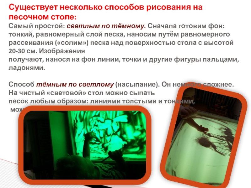 Слайд 11Существует несколько способов рисования на песочном столе:
