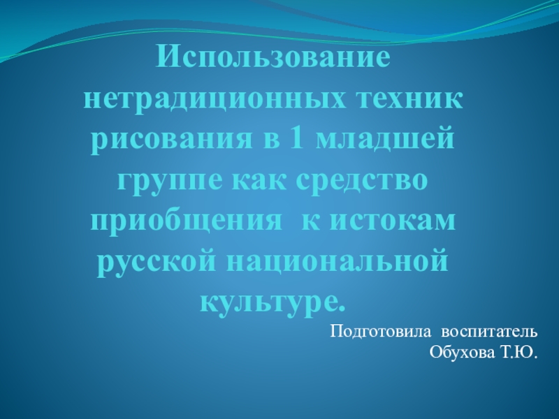 Слайд 1Использование нетрадиционных техник рисования в 1 младшей группе как средство приобщения
