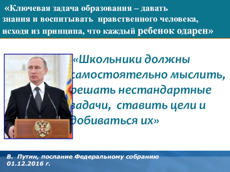 знания и воспитывать нравственного человека, исходя из принципа, что каждый ребенок одарен»