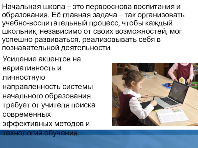 Усиление акцентов на вариативность и личностную направленность системы начального образования требует от учителя поиска современных эффективных методов и технологий обучения.