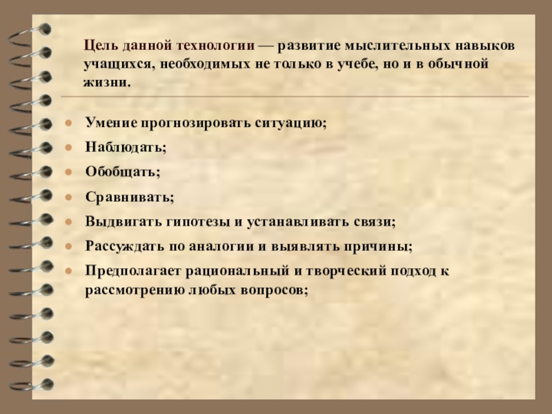Цель данной технологии — развитие мыслительных навыков учащихся, необходимых не только в учебе, но и в обычной жизни.