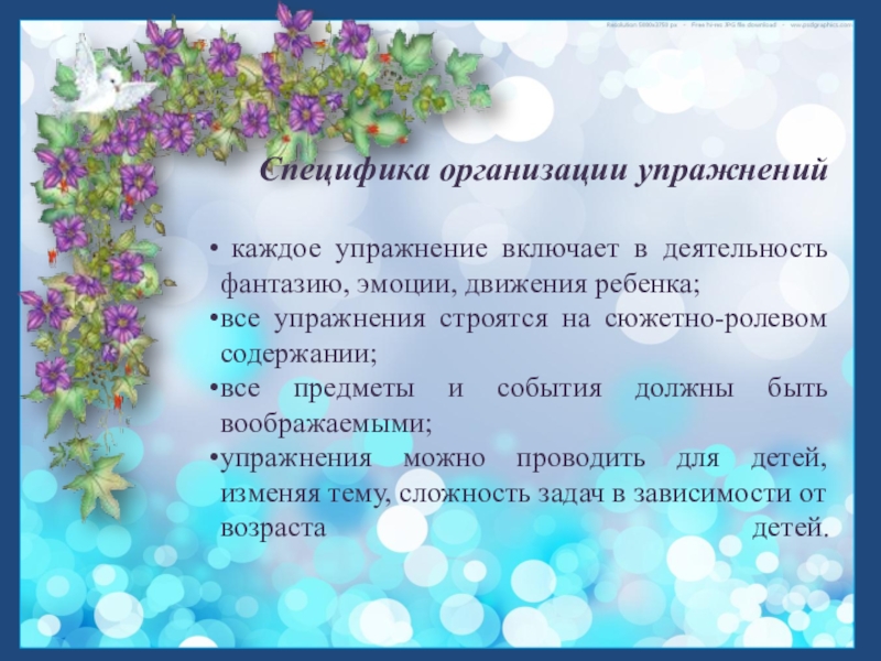 Цель такого упражнения заключается в развитии воображения, выразительности движений,