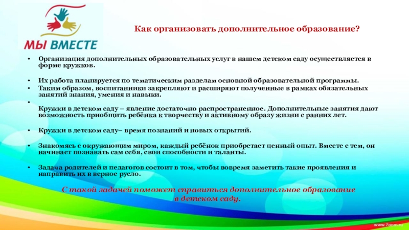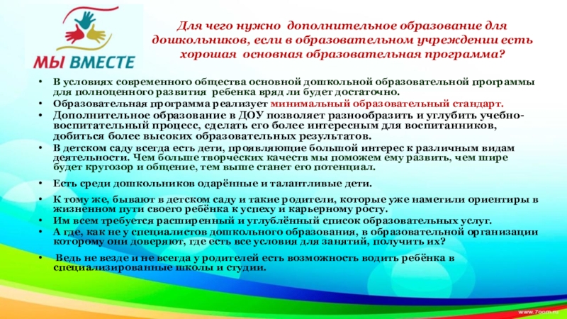 В условиях современного общества основной дошкольной образовательной программы для полноценного развития ребенка вряд ли будет достаточно.