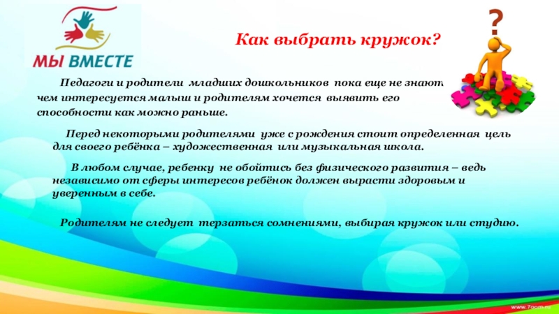 К тому же, бывают в детском саду и такие родители, которые уже наметили ориентиры в жизненном пути своего ребёнка к успеху и карьерному росту.