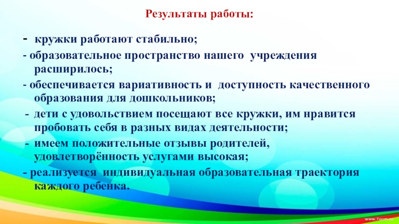 Дополнительное образование в ДОУ позволяет разнообразить и углубить учебно-воспитательный процесс, сделать его более интересным для воспитанников, добиться более высоких образовательных результатов.