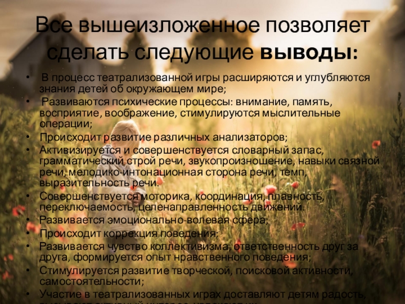 Слайд 7Большое и разностороннее влияние театрализованных игр на личность ребёнка позволяет использовать