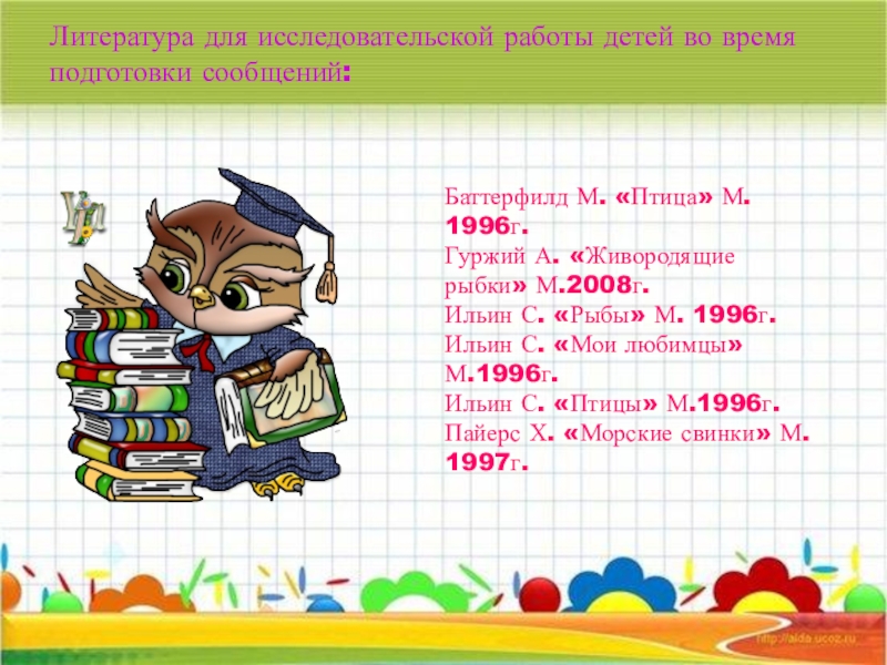 Литература для исследовательской работы детей во время подготовки сообщений: