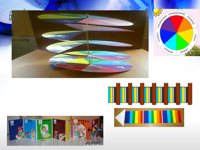 с помощью моделей можно дать представление о цикличности времени, последовательности сменяющих друг друга явлений, о диалектической связи, будущего с прошлым через настоящее. А признак цвета символизирует цветовую гамму времени года, частей суток и дни недели.