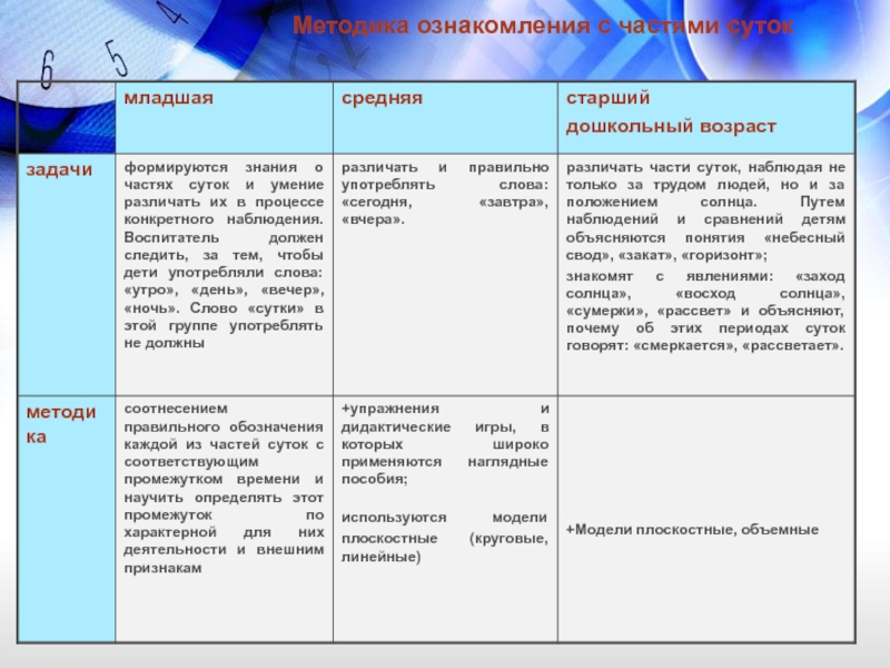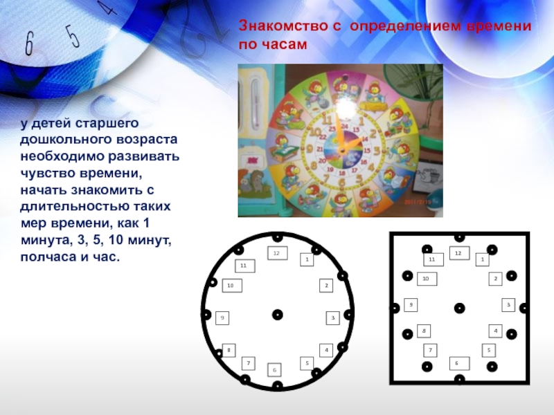 времени. Для этого необходимо осуществлять знакомство с временными интервалами в строгой системе, последовательности и с использованием разнообразных методов
