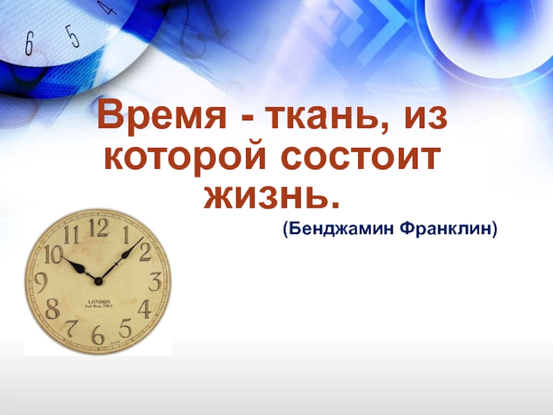 Время - ткань, из которой состоит жизнь.