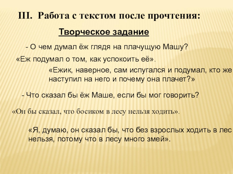 «А я думаю, что змея укусит девочку и она будет плакать от боли, а потом ёжик прибежит и защитит её».