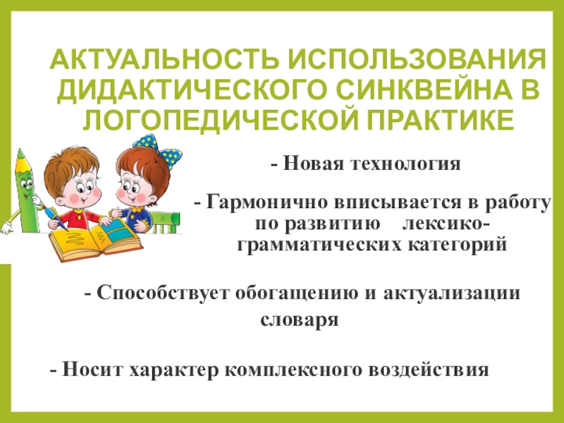- Способствует обогащению и актуализации словаря