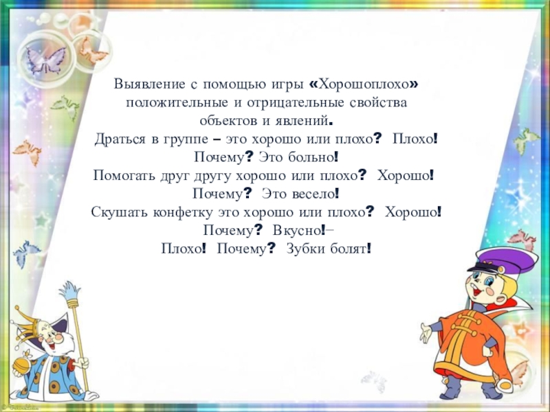 Скушать конфетку это хорошо или плохо? Хорошо! Почему? Вкусно!