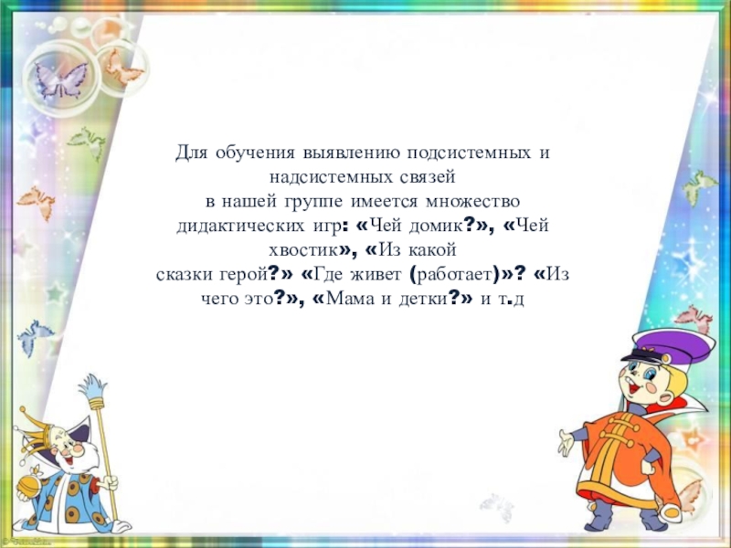 Слайд 10Для обучения выявлению подсистемных и надсистемных связей