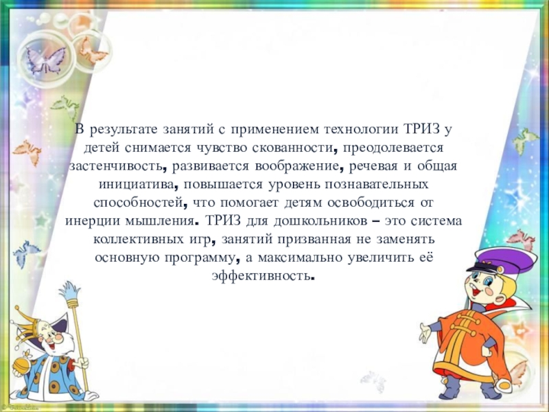 Слайд 4В результате занятий с применением технологии ТРИЗ у детей снимается чувство