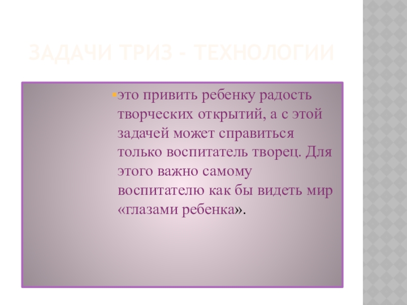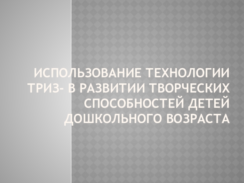 Использование технологии ТРИЗ- в развитии творческих способностей детей дошкольного возраста