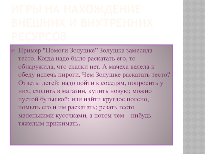 Слайд 13Игры на нахождение внешних и внутренних ресурсов