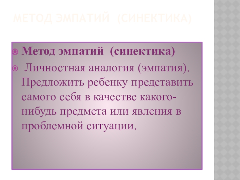 Личностная аналогия (эмпатия). Предложить ребенку представить