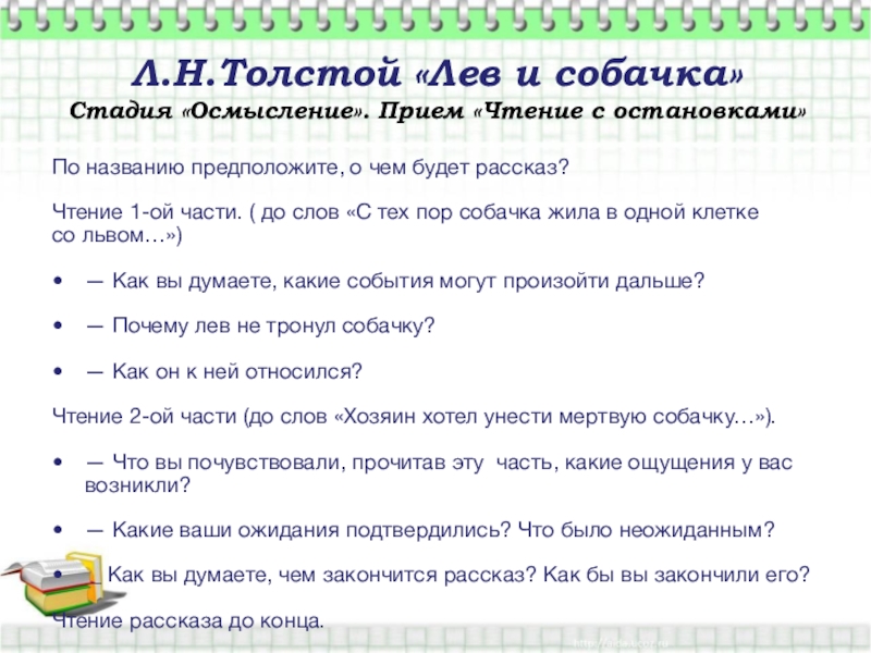 Стадия «Осмысление». Прием «Чтение с остановками»