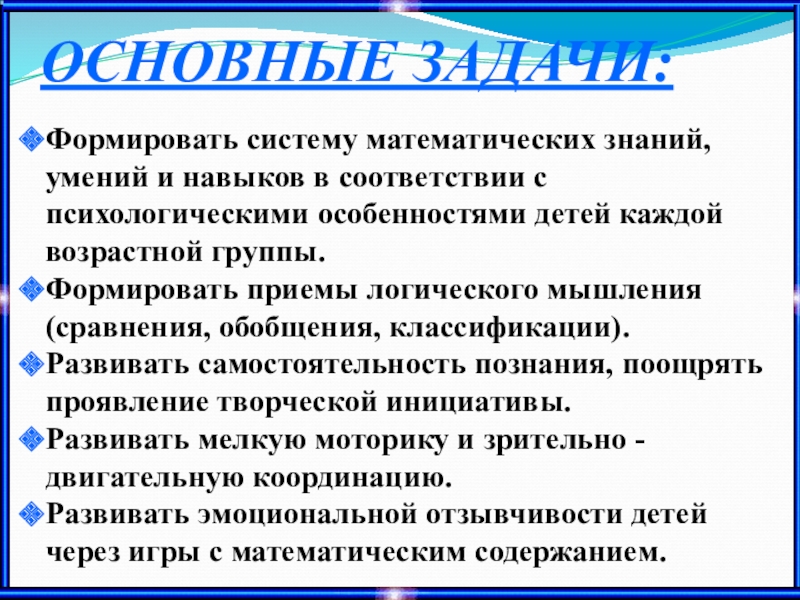 ОСНОВНЫЕ ЗАДАЧИ: