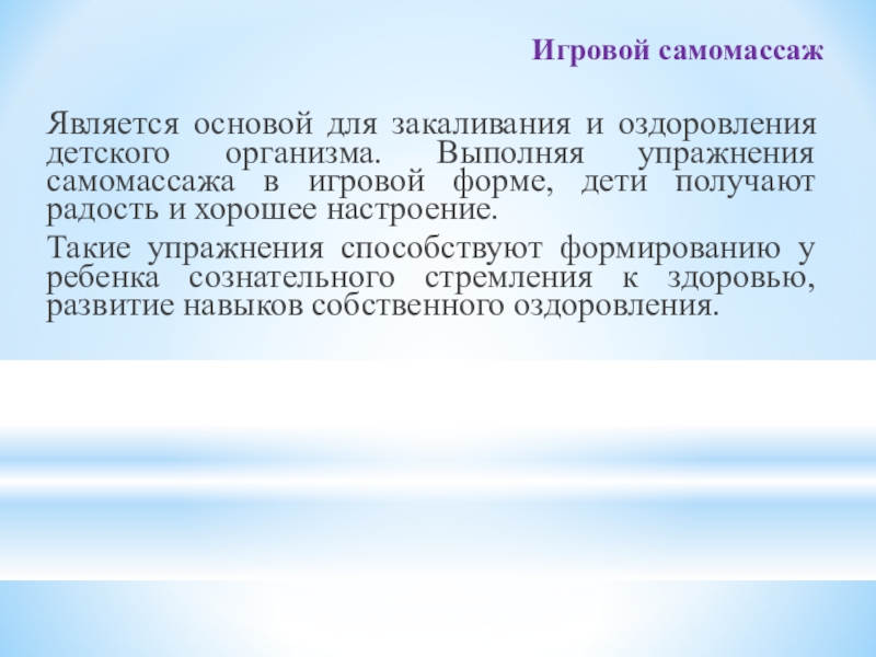 самомассажа в игровой форме, дети получают радость и хорошее настроение.