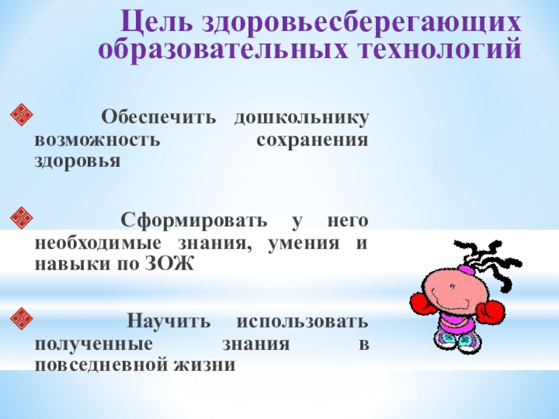 Сформировать у него необходимые знания, умения и навыки по ЗОЖ