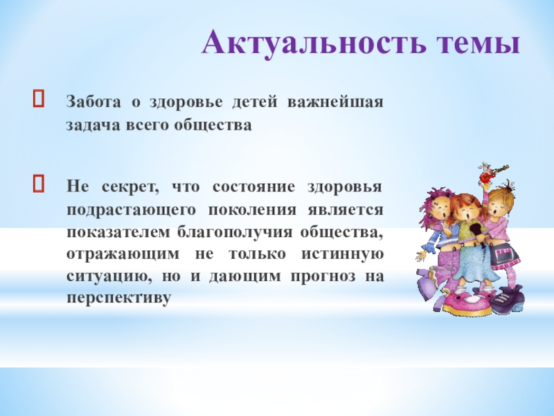 что состояние здоровья подрастающего поколения является показателем благополучия общества, отражающим не только истинную ситуацию, но и дающим прогноз на перспективу
