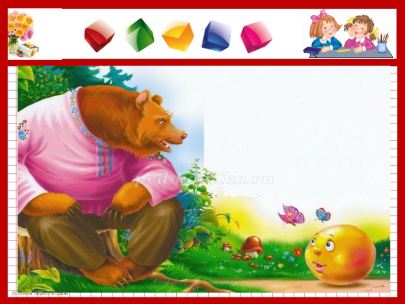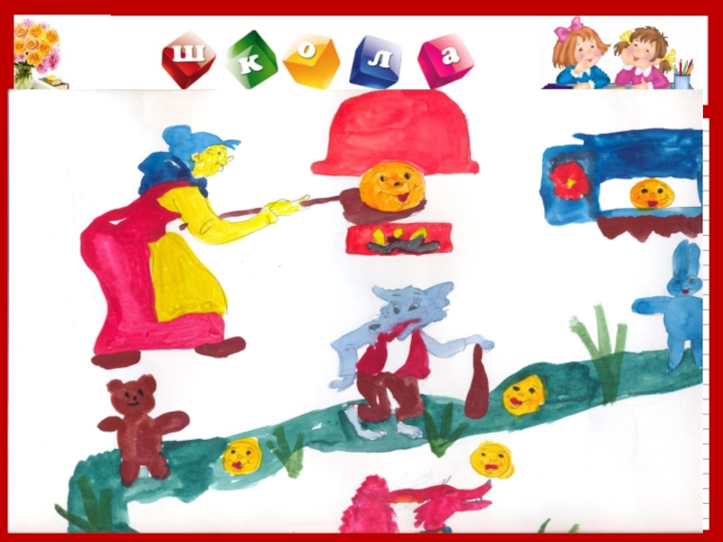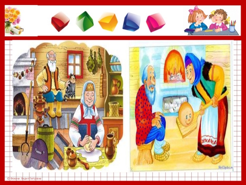 Слайд 9Дед, бабка умеют творить, их творение «колобок». Бабка положила колобка на