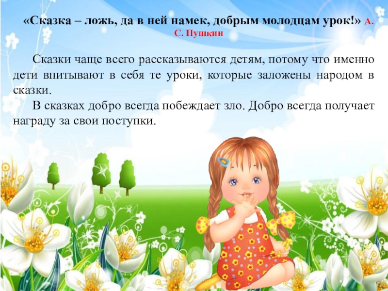 «Сказка – ложь, да в ней намек, добрым молодцам урок!» А.С. Пушкин