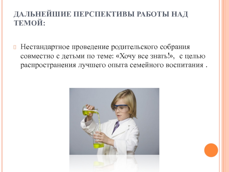 Слайд 11ДАЛЬНЕЙШИЕ ПЕРСПЕКТИВЫ РАБОТЫ НАД ТЕМОЙ: