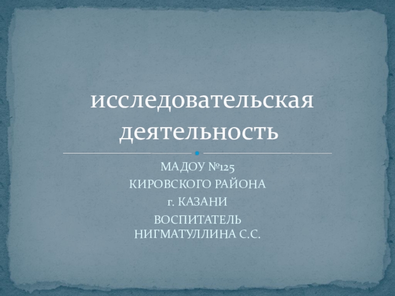 МАДОУ №125КИРОВСКОГО РАЙОНА г. КАЗАНИВОСПИТАТЕЛЬ  НИГМАТУЛЛИНА С.С. исследовательская деятельность
