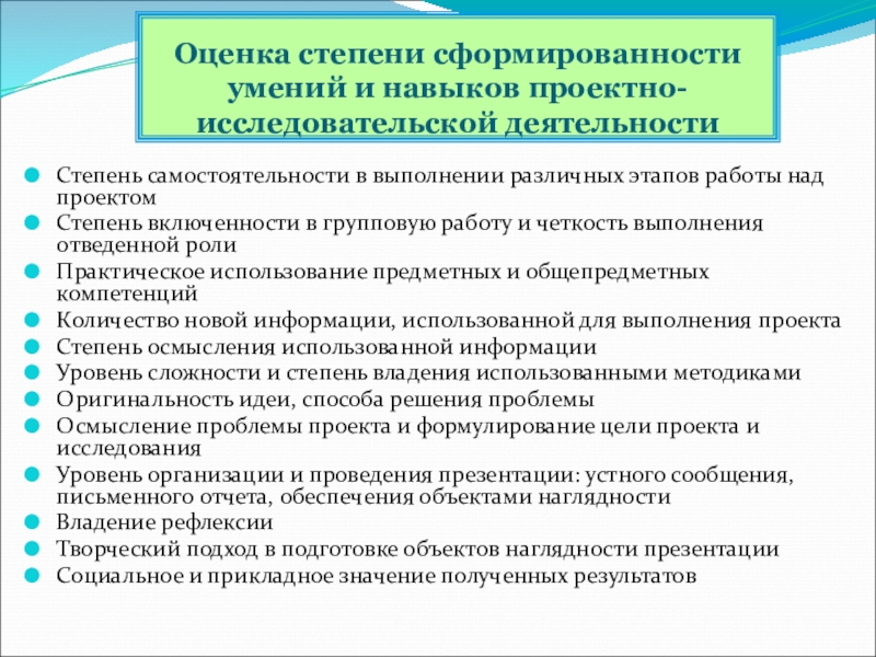Оценка степени сформированности умений и навыков проектно-исследовательской деятельности