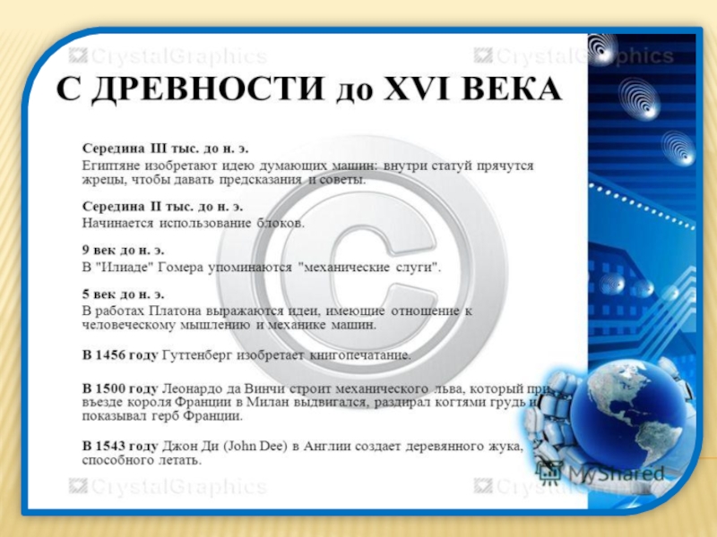 Это сайт презентаций, где можно хранить и обмениваться своими презентациями, докладами, проектами, шаблонами в формате PowerPoint с другими пользователями. Мы помогаем школьникам, студентам, учителям, преподавателям хранить и обмениваться учебными материалами.