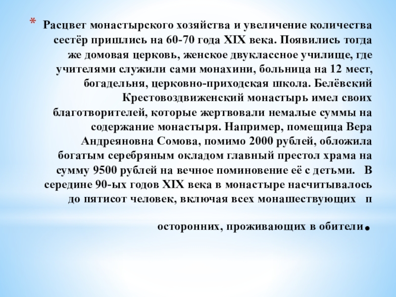 Слайд 20Расцвет монастырского хозяйства и увеличение количества сестёр пришлись на 60-70 года