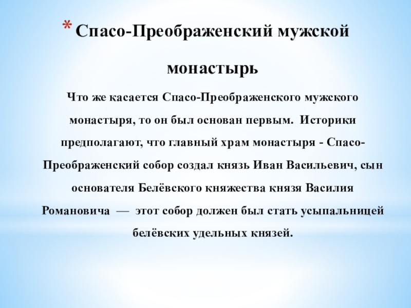 Слайд 24Спасо-Преображенский мужской монастырь